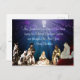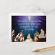 Schöne Krippe mit einem Engel im Nachthimmel mit dem Weihnachtsmann, der die Szene beobachtet. Einzigartiges Christliches Weihnachtsgeschenk.