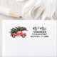 Weihnachts-Script Mr. und Mrs. Red Truck Rücksendeadresse. Perfektes Rücksendelabel für die Neuvermählten. Das Rectangle-Rückgabelabel verfügt über ein Pinselskript und einen handbemalten Vintagen, roten Truck mit Aquarellfarbe. Die Farbe der Schriftart und Schrift kann individuell angepasst werden. Kundenspezifische Bestellungen finden Sie unter truullc@gmail.com.