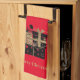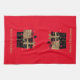 Dieses Küchentuch wird in individuellem Rot mit einem kurzen Stapel schwarz-goldfarbener Weihnachtsverpackungen und mattem goldfarbenem Text von Frohen Weihnachten gezeigt. Passen Sie dieses Objekt an oder kaufen Sie es wie gezeigt.