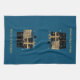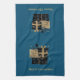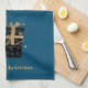 Dieses Küchentuch wird in aquamarinem Blau mit einem kurzen Stapel schwarzer und goldfarbener Weihnachtsverpackungen und mattem goldfarbenem Text von Frohen Weihnachten gezeigt. Passen Sie dieses Objekt an oder kaufen Sie es wie gezeigt.