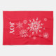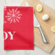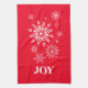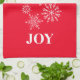 Dieses Küchentuch wird in Rot mit einem klassischen Weihnachtsdruck von großen Schneeflocken mit Text von JOY gezeigt. Passen Sie dieses Objekt an oder kaufen Sie es wie gezeigt.