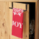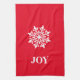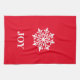 Dieses Küchentuch wird in Rot mit einem klassischen Weihnachtsdruck einer großen Schneeflocke mit Text von JOY gezeigt. Passen Sie dieses Objekt an oder kaufen Sie es wie gezeigt.