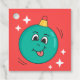 Weihnachten Urlaub fröhlicher Cartoon Smiley, blauer Weihnachtsball im roten Hintergrund, weiße Sterne, Vintage Groovy Charakter