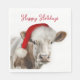 Niedliche Aquarellkuh mit einem Weihnachtshut auf Weiß mit Happy Holidays Text. Text kann geändert werden.