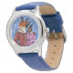 Kinderuhr aus Edelstahl mit blauem Lederarmband