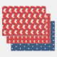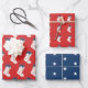 Dieses an der Küste inspirierte Set von Geschenkverpackungen bieten klassische Weihnachtsfische mit roten Krabben und einem blauen Bogen auf zwei Laken und einem dritten Blatt mit weißen Sternen auf dunkelblau.