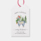 Diese niedlichen Weihnachtsgeschenktafeln sind mit einem trendigen Aquarellama in einer Weihnachtsmannmütze und einem grünen Winterschal stehend, das vor grünen Kiefern steht. Der komische Text sagt "glückliche Lamatays",