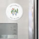 Dieser niedliche Weihnachtsmagnet zeichnet sich durch ein trendiges, wasserfarbenes Lama in einer Weihnachtsmannmütze und grünem Winterschal aus, stehend vor grünen Kiefern. Der lustige Text sagt "Happy Lamadays".