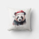Aquarellmalerei auf einem Panda mit rotem Winterhut im Weihnachtsstil