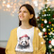 Aquarellmalerei auf einem Panda mit rotem Winterhut im Weihnachtsstil
