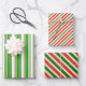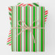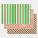 Diese lustigen, festlichen Designs zeigen Weihnachten und Feiertage inspirierte rote, weiße und grüne Streifen Muster. Papierblätter wie diese können zum Umhüllen von Geschenken oder Geschenken zum Weihnachtsfeiern verwendet werden.