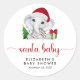 Weihnachts-Weihnachtsaufkleber für Ihr Baby-Duschfavoriten und Korrespondenz mit "Santa Baby" in einem stilvollen roten Drehbuch mit Wimpern und einer niedlichen Wasserfarbe eines Babyelefanten mit einer Weihnachtsmannmütze, einem Weihnachtsbaum, einem roten und grünen Zuckerrohr und Geschenken. Fügen Sie den Namen und das Duschdatum der Mutter hinzu, die in einfacher moderner Typografie erscheint.