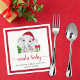 Weihnachts-Weihnachtsservietten für Ihre Babydusche mit "Santa Baby" in einem roten Drehbuch mit Wimpern und einer niedlichen Wasserfarbe eines Babyelefanten mit einer Weihnachtsmannmütze, einem Weihnachtsbaum, einem roten und grünen Zuckerrohr und Geschenken. Fügen Sie den Namen und das Duschdatum der Mutter hinzu, die in einfacher moderner Typografie erscheint.