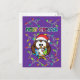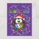 Eine Postkarte für Weihnachten mit einer Eule, die in Weihnachtsbeleuchtung verschlungen ist.