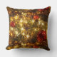 Glamouröses Weihnachtskissen mit roten und goldenen Weihnachtsbaumkissen, funkelnden Lichtern, Tinkel und Weihnachtsbaumästen.