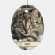Verzierung mit Fotos auf beiden Seiten. Kleine Bögen neben Namen auf beiden Seiten ovaler Ornamente. Fügen Sie vertikale (portrait) orientierte Bilder von Tieren, Kindern oder jedem, den Sie wählen. Das Band und das Bogen-Design auf der Vorderseite sind weiß mit Gold, und der Name ist goldfarben. Auf der Rückseite sind Bogen und Band dunkelblau mit weißem Text für den Namen.