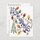 Leicht zu individualisieren Weihnachten Party Einladung mit dem Wort Holiday in Christmas Lights. Retroschmuck und Bonbons unterstreichen den Rücken der Einladung. Vintager Illustrator Cartoon Frohe Weihnachtsfeiertage mit dem Wort "Feiertage" verpackt mit farbenfrohen gelben, roten und grünen Weihnachtsbeleuchtung. Umgeben von goldenen Sternen und einem Weihnachtsbaum aus dem Wald.