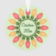 Dieses festliche Urlaubsdesign besteht aus einem Kreis aus grafischen Weihnachtslampen in den Farben Rot und Gelb-Orange.