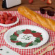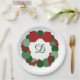 Fügen Sie Ihren Weihnachtsfeierlichkeiten eine besondere Touch mit Tellern aus Papier mit einem geometrischen Weihnachtskranz mit einer anpassbaren Monografie in der Mitte hinzu. Der Kranz in diesem originalen digitalen Design besteht aus grünen Punkten in drei verschiedenen Farbtönen und Größen. Ein Strang aus kleineren roten Punkten, der an die Cranberries erinnert, windet sich um das kreisförmige Muster. Das Bild wird mit einem roten Bogen überragt. Digitales Bild. Copyright © 2012 Claire E. Skinner. Alle Rechte vorbehalten.