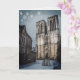 Weihnachts-Caroler an der Kathedrale Feiertag Grußkarte. Vor dem Eingang einer gotischen mittelalterlichen Kathedrale versammelte sich eine kleine Gruppe von Gemälden, die stark an Notre Dame in Paris erinnert. Vielleicht singen sie Oh Heilige Nacht in den dunklen Himmel, während der Schnee zu fallen beginnt...