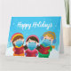 Funny Happy Holidays 2020 Urlaubskarte mit niedlichen Weihnachtsliedern in Gesichtsmasken, um Covid während der Pandemie zu bekämpfen. Bleibe dich während der Quarantäne von Coronavirus sicher, indem du soziale Distanziertheit erlangst und Masken für deine Freunde und Familie trägst. Glückliche Urlaubskarten Spaß. Ideal für ein Unternehmen oder eine Familie.