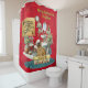 Möchten Sie Ihren Gästen ein kleines Bad geben? Stellen Sie sich eine lustige Weihnachtskatze in einer Kiste vor. Man kann sich vorstellen, was das bezaubernde, unversehrte Kätzchen vor sich hat. Personalisieren Sie es mit Ihrem Namen oder dem Namen des Empfängers. Ändern Sie "Frohe Weihnachten" in "Merry Cx#8#xmas" für ein extra Lächeln. Eine hängende goldene Leinwand zeigt ein humorvolles Zitat für diejenigen, die in Ihr Bad gehen. Der Hintergrund ist ein lebendiges Weihnachtsrot. Die Szene zeigt eine in den Weihnachtsbeleuchtung eingerichtete Badezimmerecke mit Badewanne, Waschbecken, Spiegel, Stuhl, Pflanze und einem Teppichboden. Die Katze trägt eine Weihnachtsmannmütze und ein Halsband mit Weihnachtsbeleuchtung und sitzt in einer Kiste, die mit einem goldenen Band und farbenfrohen Ornamenten geschmückt ist.