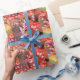 Ein Foto eines Weihnachtsliedes unter einem Weihnachtsbaum mit roten Geschenken, das in Hutchinson Kansas USA hell und farbenfroh ist. Das ist auf Papier, das hell und farbenfroh ist.