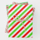 Diese lustigen, festlichen Designs sind mit weihnachtlichen Streifenmustern in den Farben Grün, Weiß und Rot gestaltet. Feiernde Packpapierblätter wie diese könnten Spaß machen, wenn Geschenke zum Weihnachtsfeiern verpackt werden.