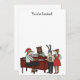 Niedliche Weihnachtseinladung mit Hipster-Tieren am Klavier spielen Musik. Fox, Bär, Kaninchen mitsingen.