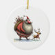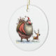 Der Weihnachtsmann mit einem niedlichen Rentier und seinem Geschenkbeutel auf einer Keramik Weihnachtsschmuck. Text auf der Rückseite kann geändert werden. Aquarellbilder mit AI-unterstützten Grafiken, die mit kommerzieller Verwendung erworben wurden. Kunstwerk: RedHeronLighthouse
