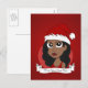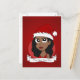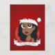 mit einer Illustration der schönen jungen Afrikanerin mit scharfen Haaren und dem Hut des Weihnachtsmanns; mit bearbeitbarem Textvorlage, Weihnachtsfeierdesign auf rotem Hintergrund, von Radka Kavalcova