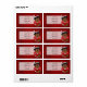 Etikett mit einer Abbildung eines niedlich lächelnden afroamerikanischen Mädchens mit afroamerikanischem Haarstil, das Mädchen trägt ein Weihnachtskostüm mit einem roten Hut und hält ein Geschenk; in einem roten Kreis auf einem roten Hintergrund, mit einer bearbeitbaren Textvorlage für Ihren Namen oder Ihre Nachricht