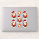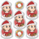 Set von sieben Vinyl-Aufklebern mit einer Illustration eines niedlichen kleinen, glücklichen lächelnden Mädchens mit langen braunen Haaren, das in Weihnachtskleider gekleidet ist und einen roten Weihnachtshut trägt; fünf Aufkleber des Mädchens und zwei Aufkleber mit einem Weihnachtskranz; mit einer anpassbaren Textvorlage für Ihren Namen oder Ihre Nachricht.