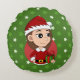 Weihnachtsmädchen mit langen braunen Haaren Rundes Kissen