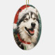Buntes und fröhliches Weihnachtsdesign mit einem Husky mit einer Weihnachtsmannmütze.