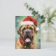 Buntes und fröhliches Weihnachtsdesign mit einem Mastiff mit einer Weihnachtsmannmütze.