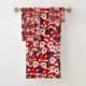 Weihnachtsmann-Feiertagsbadezimmer-Tuch-Set. Niedliche Weihnachtsmann-Bilder auf Tüchern. Groß für das Gastbadezimmer oder ein Kinderbadezimmer. Spaßentwurf.
