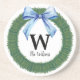 Dieser Untersetzer ist mit einem traditionellen Weihnachtskranz in Aquarellfarbe mit einem hellblauen Bogen ausgestattet. Personalisieren Sie Ihre Monografie und Ihren Familiennamen.