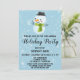 Feiern Sie die Urlaubssaison mit diesem niedlichen, festlichen Schneemann mit grünem Schal und schwarzem Hut. Die Details des Party sind in einer skurrilen, fett schwarzen Schriftzeichen-Typografie mit einem hellblauen Hintergrund mit fallenden weißen Schneeflocken geschrieben. Diese Einladung eignet sich perfekt für ein Party im Urlaub, Weihnachten und Winter!