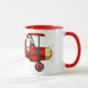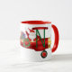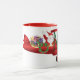 Weihnachtsmann, der auf Doppeldecker mit der Tasse