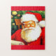 Weihnachtsmann, der sein Listenpuzzlespiel Puzzle