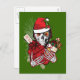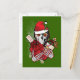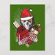 Fun Goth Skull mit einer Weihnachtsmannmütze und mit einem Geschenk und Weihnachten Strumpf gefüllt mit Urlaubsgötchen. Kunst der Künstlerin Margaret Loftin Wititing.