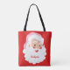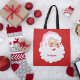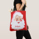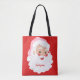 Fügen Sie einen Namen oder einen anderen Text zu dieser Totentasche mit einer Vintagen Abbildung des Weihnachtsmannes mit einer rosa Weihnachtsmannmütze hinzu. Die Abbildung ist Set vor einem festlichen roten Hintergrund.