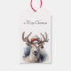 Aquarellmalerei eines Rentiers mit Weihnachtsmütze im Weihnachtsstil