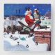 Weihnachtsmann liefert eine Armadung von Büchern Quadratische Wanduhr