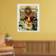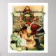 Ein wunderschönes Weihnachtsposter mit dem Weihnachtsmann, das zwei schlafende Kinder ruhig vor einem Kamin besucht.