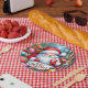 Eine süße runde bunte Frohe Weihnachten 2025 lustige Santa mit Baby Papierplatte