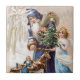 Eine schöne Vintage Fliese, die voll Weihnachtsmann mit einem Engel und einen Sleigh der Spielwaren kennzeichnet.