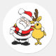 Weihnachtsmann mit Hirschklassiker runder Aufklebe Runder Aufkleber