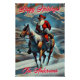 Dieses lustige Weihnachtsdesign zeigt St. Nikolaus in einem roten Cowboyhut und Reiten eines Pferdes.